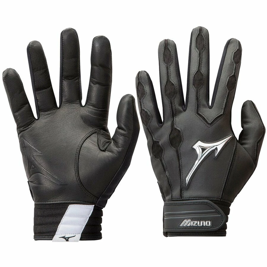 Top quality smooth white leather palm. Mizuno AirMesh utilised for maximum flex and breathability. QuikAdjust wrist tab with moulded pull tab for secure fit. 3-D chrome logo applications used for rich professional look.Compression moulded neoprene wristband with PNP (personalised number plate) for customised fit. Same design as worn by top MLB players.