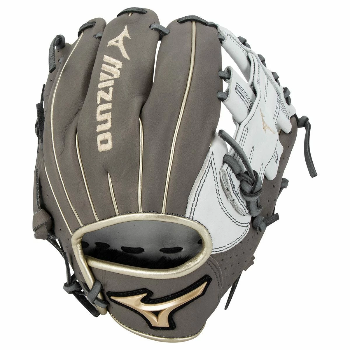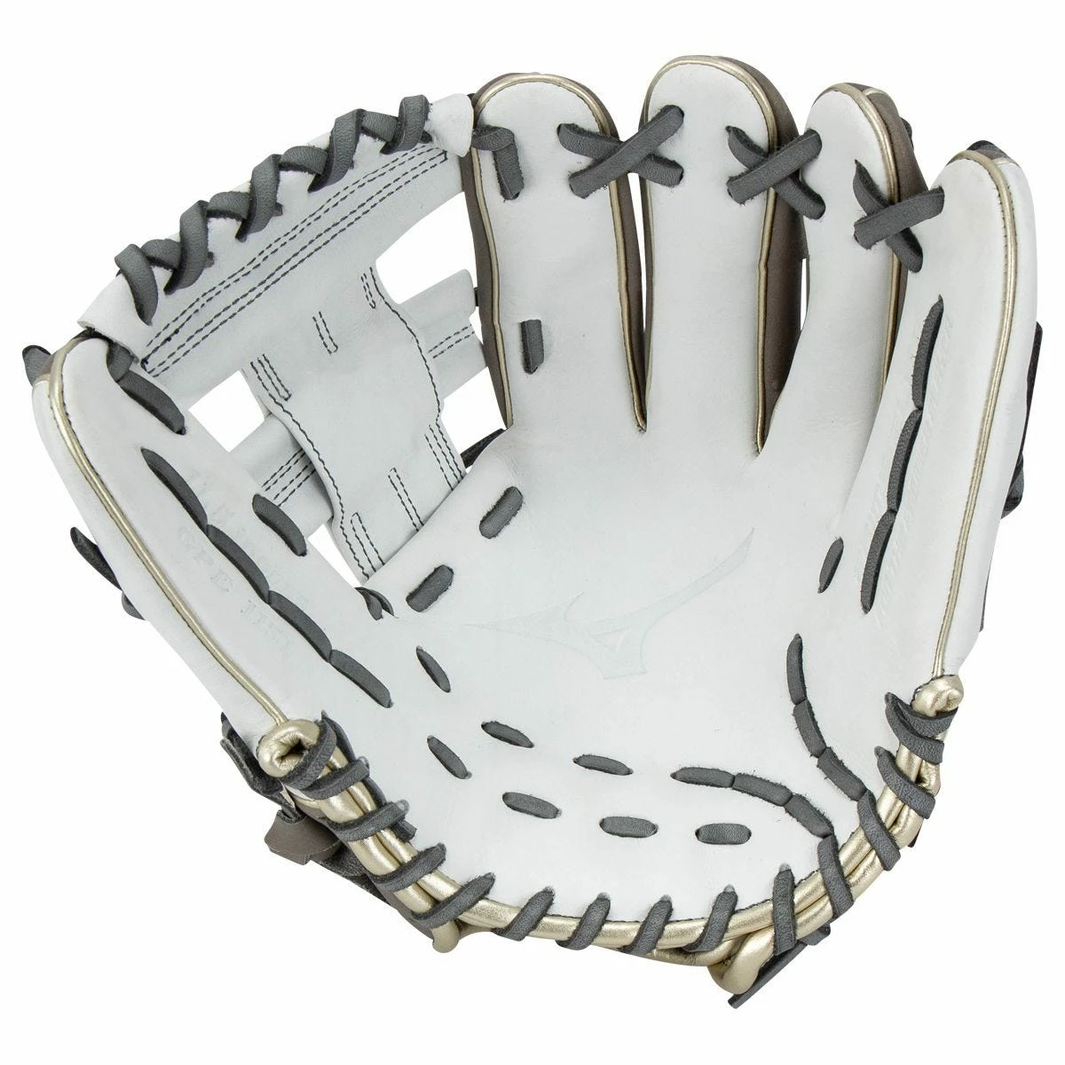 The new Mizuno Prime Elite series is crafted with soft, smooth, white and grey colored leather that is durable with a premium feel. Featuring an UltraSoft Pro Palm Liner for a soft feel and finish. A perforated thumb and pinky panel design reduces weight and increases breathability. Created with Finger Core technology, which is a new finger stall shape that helps improve flexibility and control when making a tough play, while also providing a more comfortable option for players who prefer to shift their ring finger to the pinky slot. Designed with Fastpitch patterns to make Prime Elite an excellent glove choice for serious players wanting to compete at their highest level on the field.