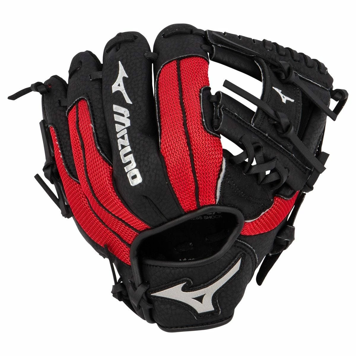 Additionally, the Mizuno Prospect Series PowerClose GPP1000Y3RD 10-inch Youth Baseball Glove is designed with a Parashock Palm Pad for outstanding protection and ideal comfort, and its PowerClose Technology makes catching easy for younger players. This glove features a Pro-I web style and a black/red colorway.