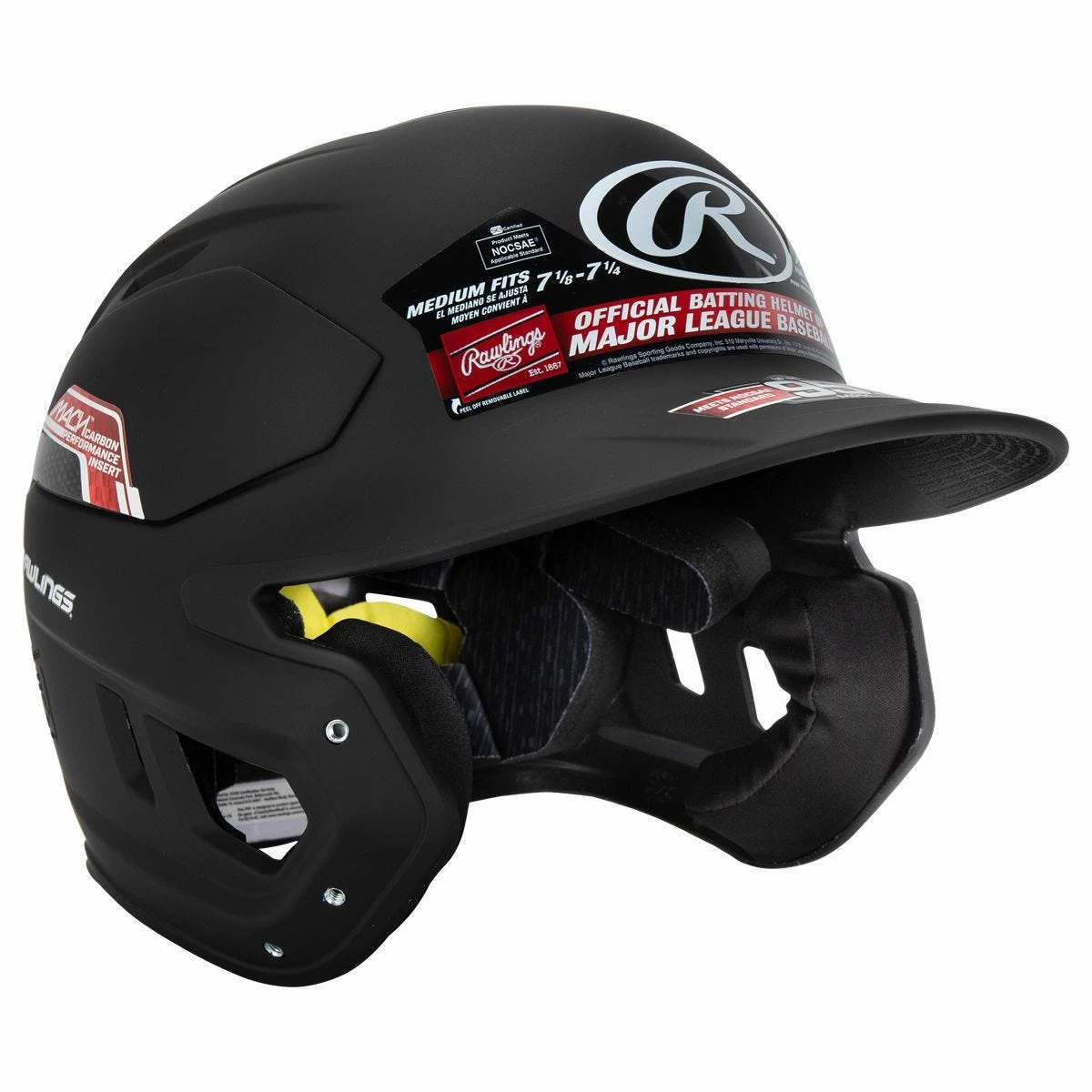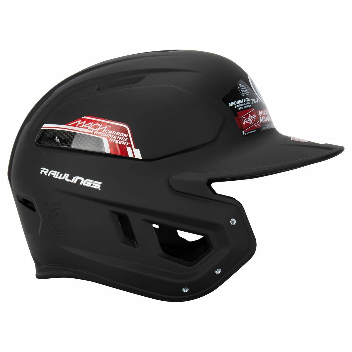 Introducing the Rawlings Mach Carbon Baseball Batting Helmet! The Mach Carbon features a durable and long-lasting IMPAX foam to help absorb and disperse force through multiple impacts. Mach Carbon includes wrapped jaw pads, as well as high-grade moisture wicking foams for customized fit and comfort. For this helmet, Rawlings added their patented Carbon/ABS hybrid design for increased strength and stiffness on high-impact areas. Several college baseball programs and minor league baseball teams use the Mach Carbon as well. This helmet also meets the NOCSAE standard for up to 95 MPH baseball pitch speed. If you are looking for a very durable and comfortable helmet, look no further than the Rawlings Mach Carbon Baseball Batting Helmet!