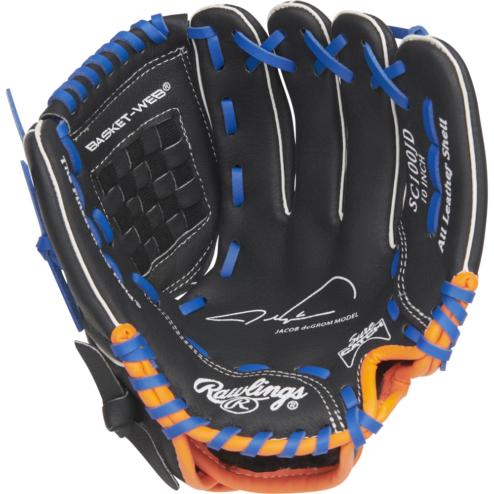 For youth players, getting the right glove to learn the game with is critical. The Rawlings Sure Catch series is built to play easily for ballplayers just starting out on their baseball journey. On top of that, this glove features a printed signature from a big leaguer to inspire your play! For maximum comfort, this Rawlings Sure Catch 10-inch Youth Glove features cushioned finger linings. The soft leather shell enhances durability and pocket formation. In addition, we specially designed the Sure Catch heel to close easier and make catching as easy as possible. This model feature’s a printed signature from superstar Jacob deGrom on the palm, meaning that every time your youth player looks down, he’ll have a role model to look up to. Get your Rawlings 10-inch Youth Glove today!